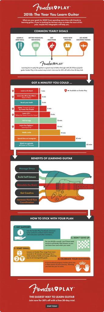 I worked with Fender’s design team to lay out the infographic, and to accompany it, I researched and wrote a piece that dove deeper into the benefits of playing guitar.